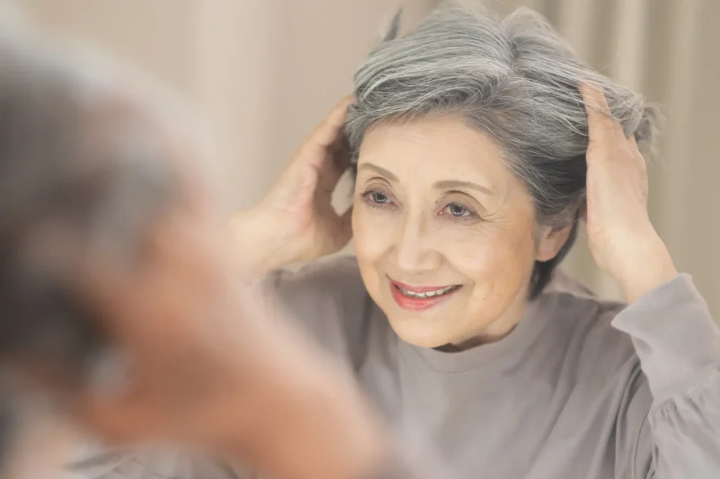 また、白髪の方や明るい髪色の方にも自然になじませることが可能です。