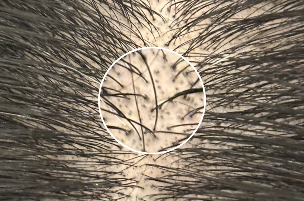 まるで毛根のように見える極小の点を専用の針とインクで頭皮に描くことで、近くで見てもバレにくく、