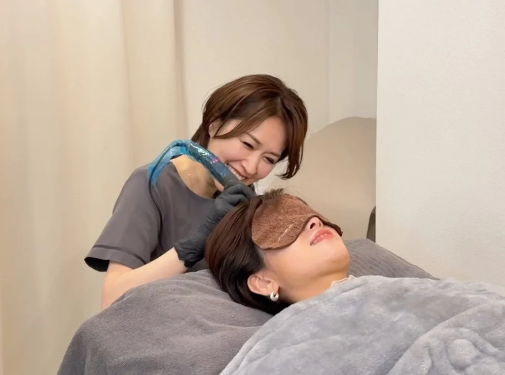 毛根や神経に触れないので、麻酔は不要。チクッとするくらいの軽い感覚で、リラックスした状態で施術を受けられます。