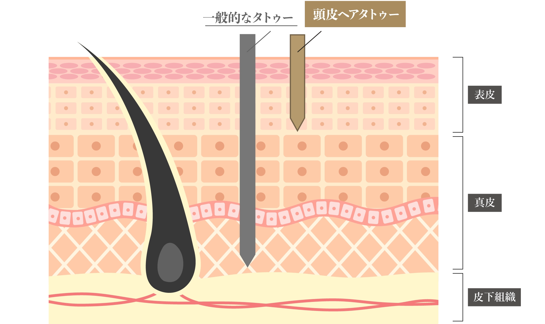 約0.25mmの浅さで、毛根や皮膚の深部には届かず、痛みも最小限。